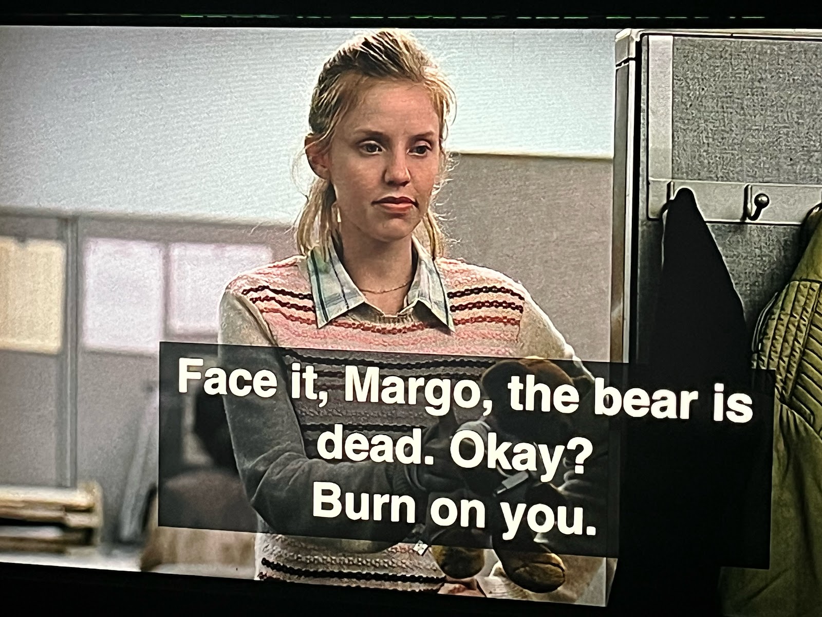 We cut to Chris and Sharon who are trying to help (a very drunk) Burke to the front door. Burke is trying