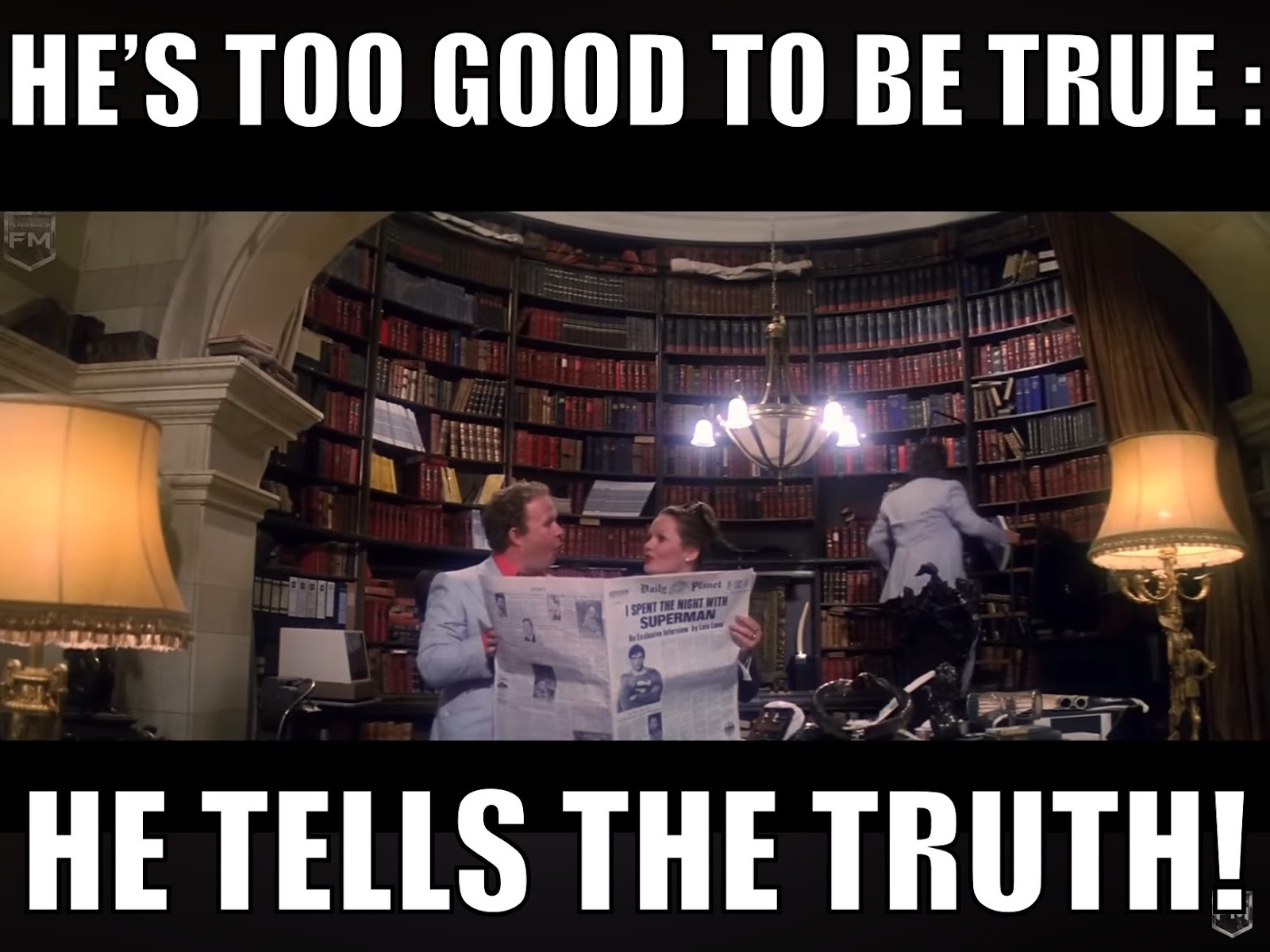 He's too Good to be True! He's six foot four, has black hair, blue eyes, doesn't drink, doesn't smoke, and tells The Truth!
