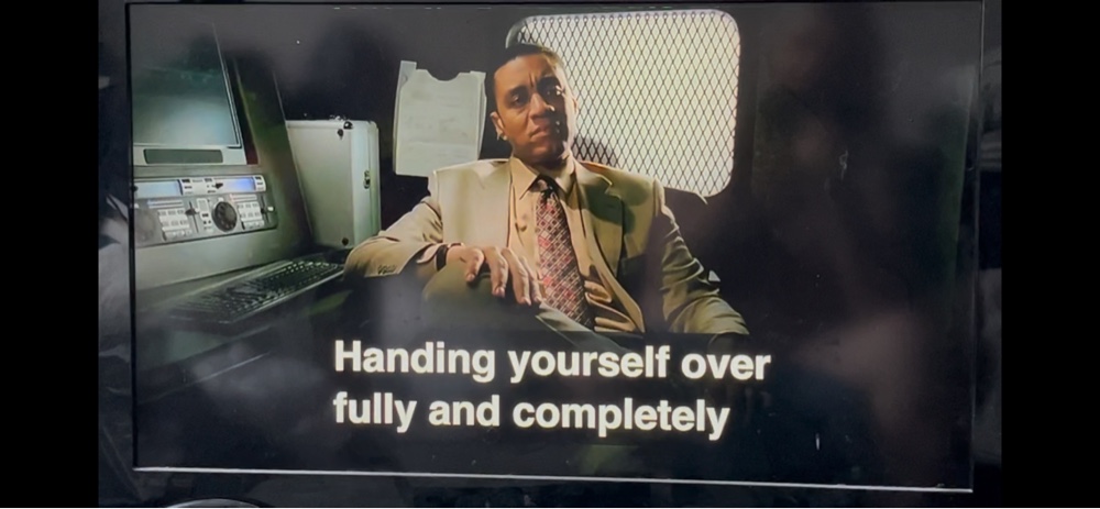“…..in our film, He is played by a •wonderful• actor named Kenneth Colley, who gives a completely straight performance, and who appears in The Distance, and the lines that He Speaks are directly quoted, verbatim from the account given of The Sermon on The Mount which appears in the Gospel of Mark — the shot then pulls back to reveal The Crowd that’re assembled to hear Him Speak to them, before eventually settling upon someone who is in The Audience, that’s stuck standing right near the •very• back of The Crowd, who says “Speak Up..!!”, because he cannot Hear Him —“